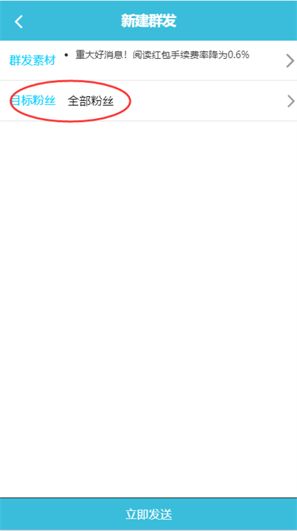 然后在接下来的页面中,选择群发目标(可按标签群发),最后再点击【立即群发】按钮即可。